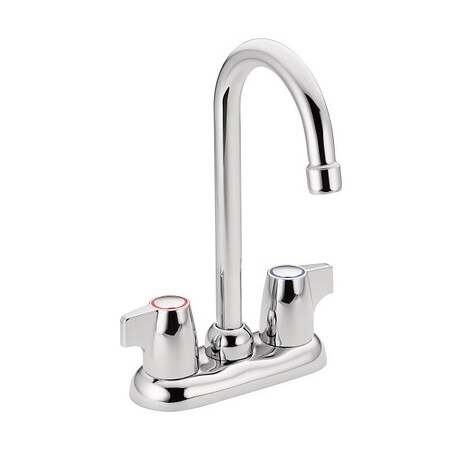 The classic look of the MOEN Chateau 2-Handle High-Arc Bar Faucet will add a timeless and sophisticated charm to your kitchen. Featuring a polished chrome finish for a sleek, mirror-like shine, this faucet combines style and function for the perfect addition to your bar or prep area. With a 10-1/2 in. high-arc spout and an easy-to-use 2-handle design, this deck-plate mountable bar faucet features brass housing material for long-lasting durability.