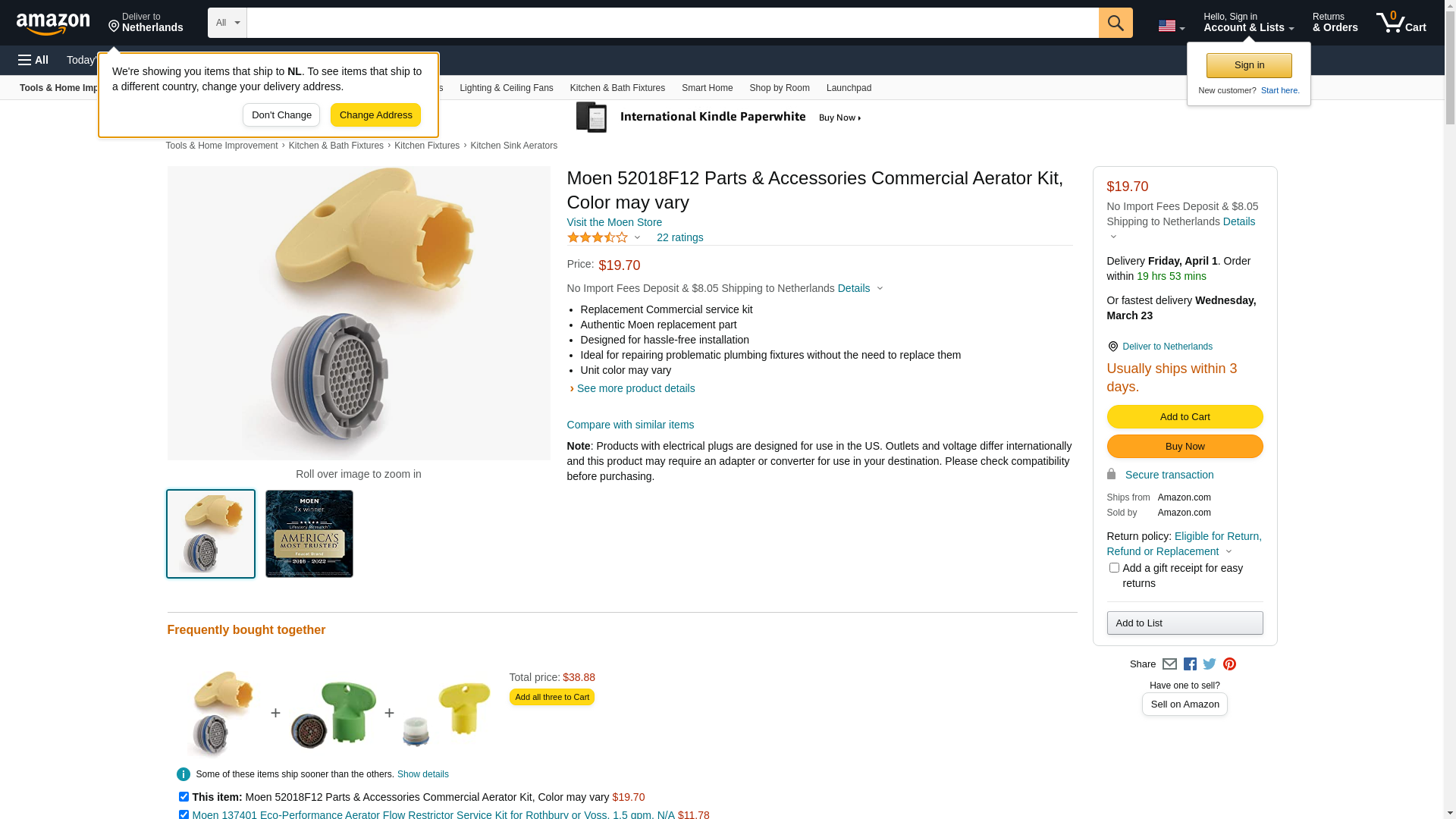 Moen 52018F12 Parts & Accessories Commercial Aerator Kit, Color may vary