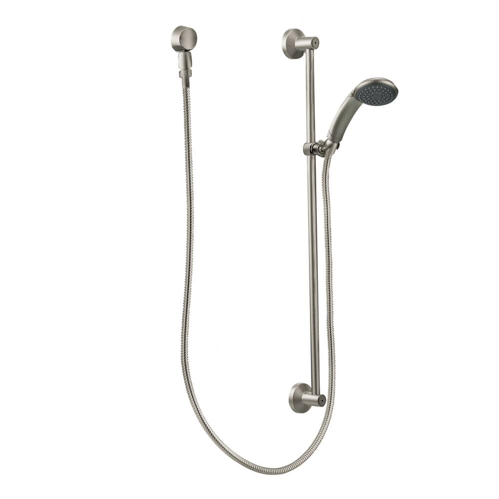 - 30-Inch slide bar and 2.5-gpm max hand held shower with non-positive pause function