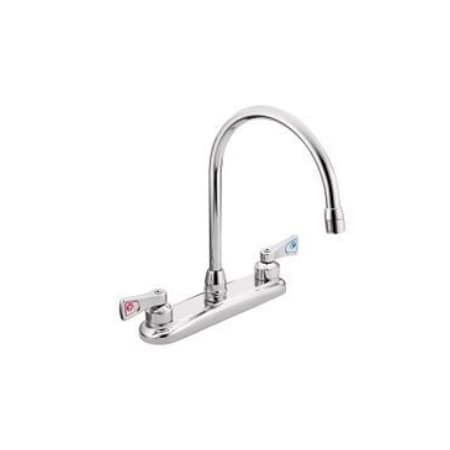 Commercial-grade, 2-Handle kitchen faucet is designed for ease-of-use with heavy-duty construction. High-arc spout for added clearance at the sink. Vandal-resistant for a variety of commercial uses.