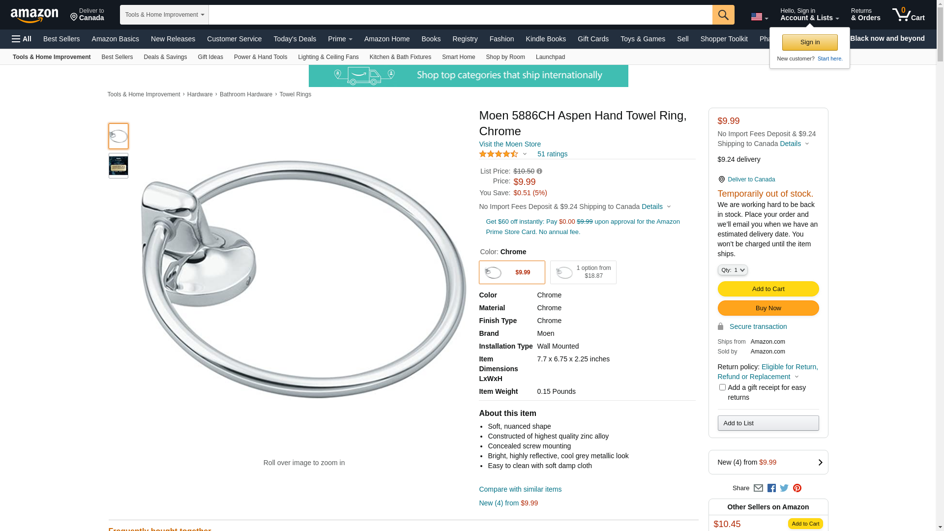 Moen 5886CH Aspen Hand-Towel Ring, Chrome