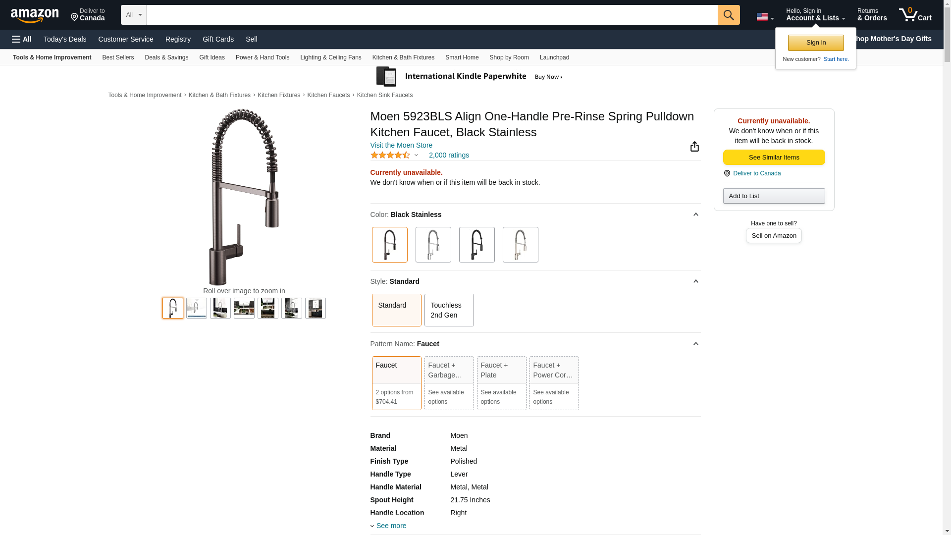 Discount deal available when you buy the Moen Align Single Handle Pre-Rinse Spring Pull-Down Kitchen Faucet, Black Stainless - 5923BLS at the PlumbersStock store, online. We offer quality Moen faucets and parts..
