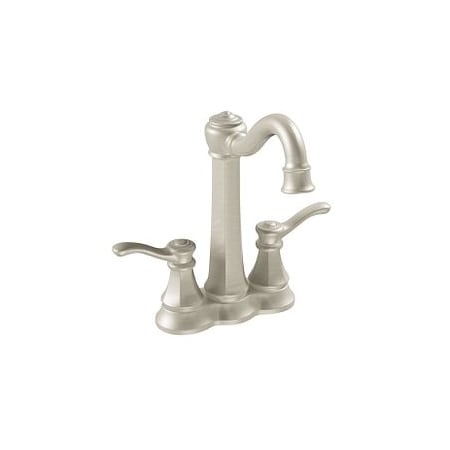 The richly detailed Vestige line features nostalgic designs topped with a finial accent that compliment traditional decor. This stainless two-handle high arc bar faucet was built to last by Moen. Stainless finish delivers a lightly brushed warm grey metallic look.