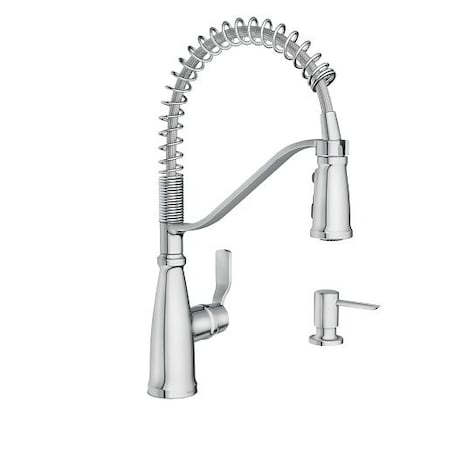 Moen Nolia Chrome One-Handle Pre-Rinse Spring Kitchen Faucet with Pull Down Sprayer, Single Hole Kitchen Sink Faucet with Soap Dispenser, 87886