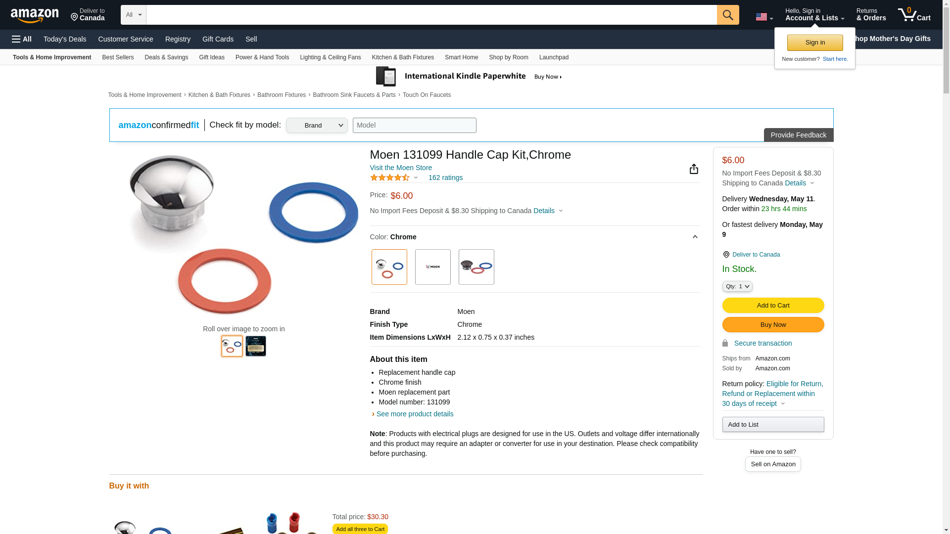 Banbury Handle Cap Kit for CA84912 Moen is dedicated to designing and delivering beautiful products that last a lifetime - all over the world. Driven by perfection, Moen's philosophy embraces innovation, reliability and exceptional service for all their customers and consumers. Their mission is to delight all of their consumers and decision makers with the highest value innovative products and services. Moen 131099 Features: Quality construction Replacement part For Models Prior to June 2011