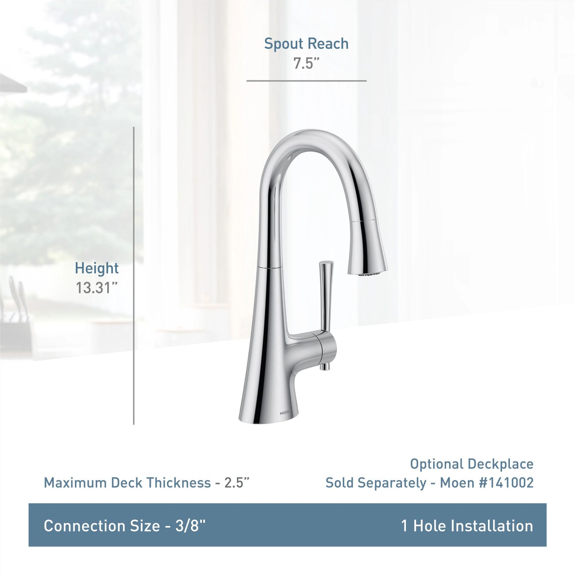 Moen Kurv Collection Chrome One-Handle Pulldown Bar Faucet with Power Clean Featuring Reflex, 6126