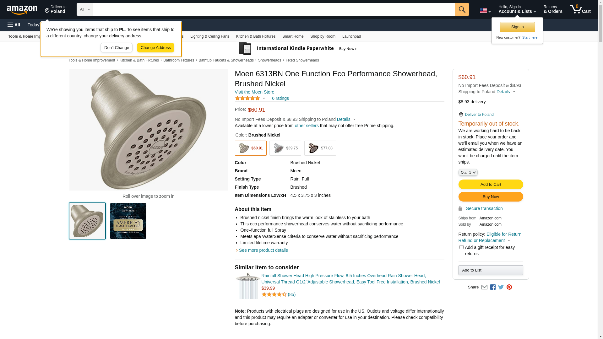 ![]() plumbing-deals.com | MOE6313BN | 1 | 1 | 1 @ $72.91 |