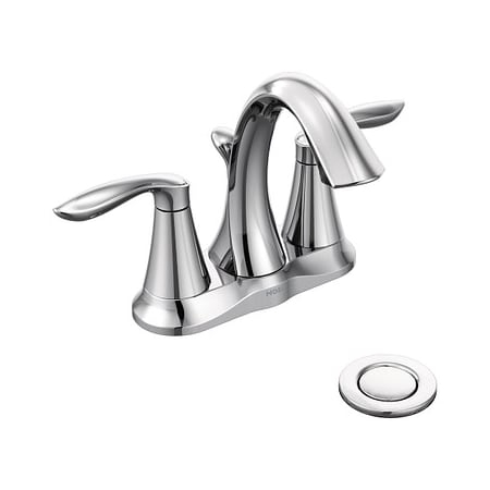 Moen Eva Chrome Two-Handle Centerset Bathroom Sink Faucet with Drain Assembly for 3-hole Installation Setups, 6410, 0.5