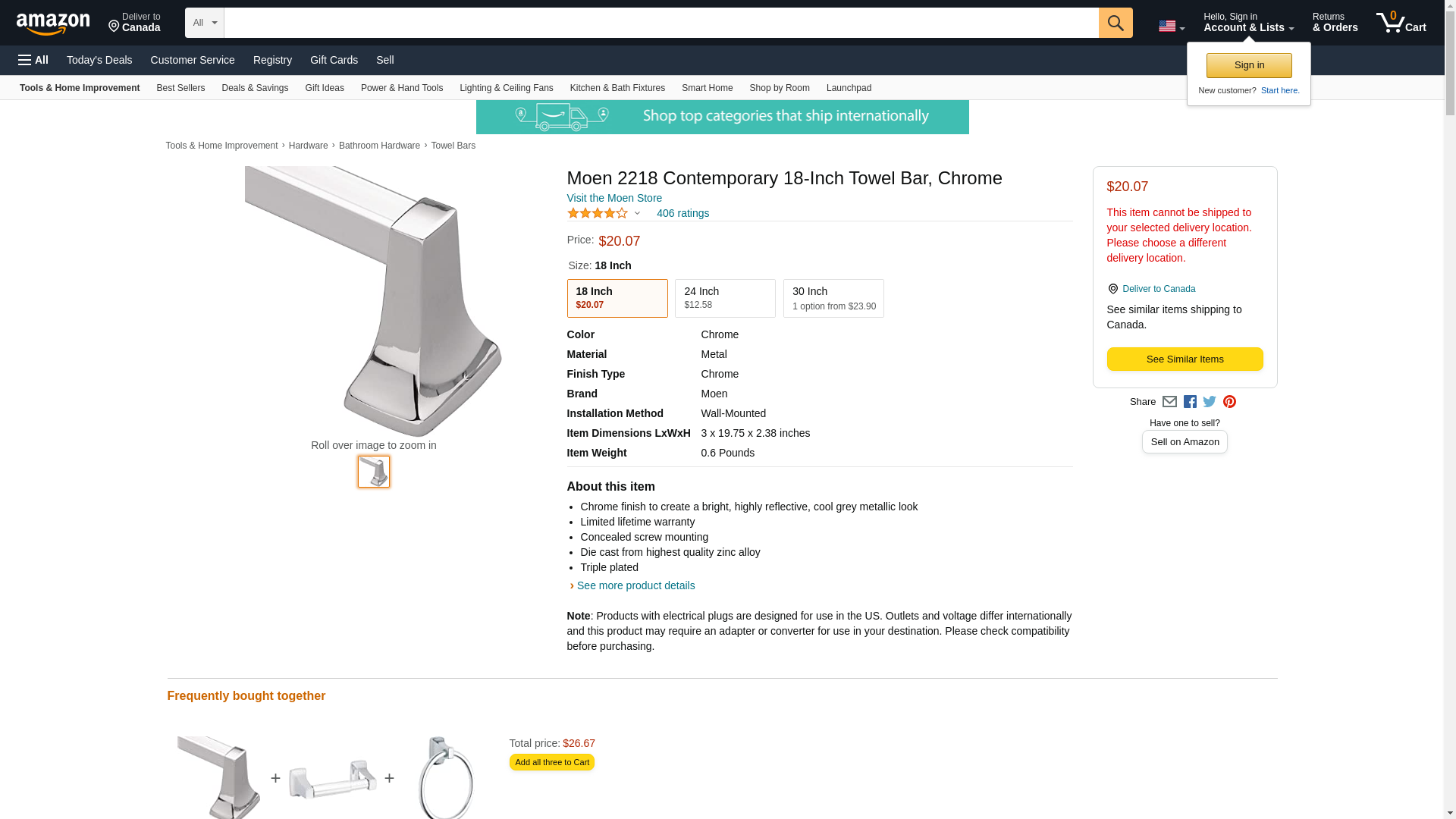 Moen 2218 Contemporary 18-Inch Towel Bar, Chrome