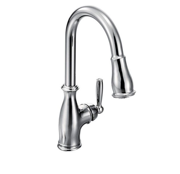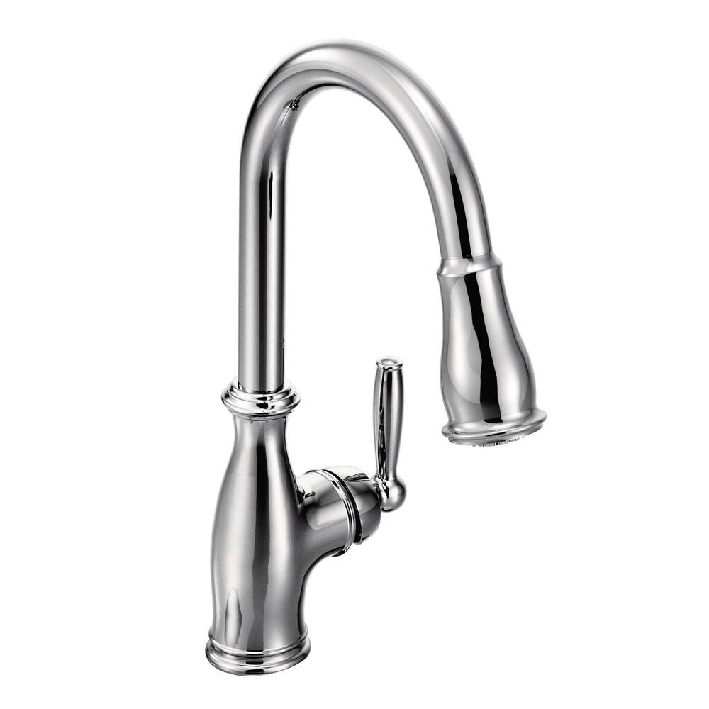 Moen Brantford Chrome One-Handle Pulldown Kitchen Faucet Featuring Power Poost and Reflex, 7185C, Chrome