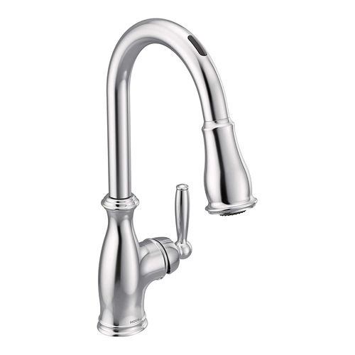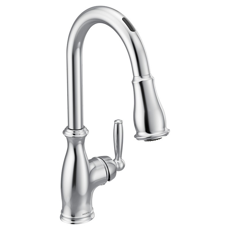 Moen - 7185EVC - Brantford Smart Faucet Touchless Pull Down Sprayer Kitchen Faucet with Voice Control and Power Boost, Chrome