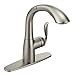 Moen Arbor Pullout Kitchen Faucet 7294SRS Spot Resist Stainless. Spot Resist(TM) stainless finish resists fingerprints and water spots for a cleaner looking kitchen. Quick connect creates easier, faster installation with fewer tools. Pullout design offers at your fingertips water delivery. One handle lever handles make it easy to adjust the water. Equipped with the Reflex system for smooth operation, easy movement and secure docking of the pulldown/pullout spray head. Aerated stream for everyday cleaning; pause function lets you conveniently stop water flow from the spray head; powerful rinse for heavy duty cleaning. Single hole mount creates a cleaner look against custom countertops. Eco performance design uses less water without sacrificing performance. Complies with Americans with Disab