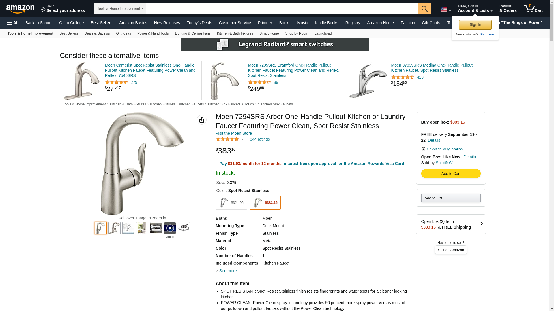 | Faucet Shark | MOEN-7294SRS | 1 | 1 | 1 @ $266.66 | |