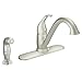 7840CSL Finish: Stainless Steel Features: -Features Duralock quick connect system for easy installation. -One–handle lever handles make it easy to adjust the water. -Included side spray for convenient cleaning at the sink. -Aerated stream for everyday cleaning. -Standard design mounts on the sink or countertop. Product Type: -Standard kitchen faucet. Number of Installation Holes: -2. Country of Manufacture: -United States. Generic Specifications: -Complies with Americans with Disabilities Act (ADA) specifications. -Meets current legislation, including AB1953 (California) and S152 (Vermont). Dimensions: Overall Faucet Height: -1.5". Overall Faucet Depth: -9.25". Spout Reach: -9.25". Spout Height: -6.13". Overall Product Weight: -4.6 lbs.