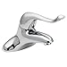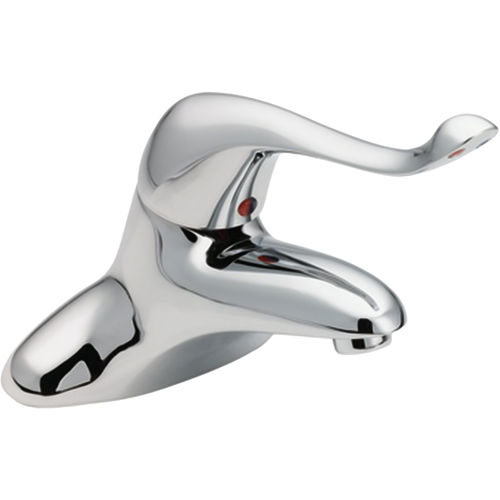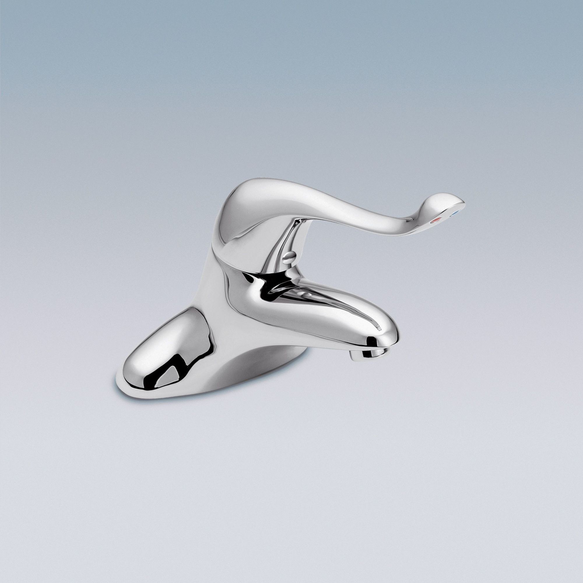 Product Features: Faucet body constructed of brass Covered under Moen's 5 year limited commercial faucet warranty Premier finishing process - finishes will resist corrosion and tarnishing through everyday use Durable solid brass waterways Extra long 6" lever handle for ease of use Single handle operation ADA compliant - complies with the standards set forth by the Americans with Disabilities Act for bathroom faucets Low lead compliant - meeting federal and state regulations for lead content Complete with ceramic disc valve Designed for use with standard U.S. plumbing connections All hardware needed for mounting is included with faucetProduct Specifications: Overall Height: 9-5/8" (measured from counter top to highest part of faucet) Spout Height: 2-1/2" (measured from counter top to spout outlet) Spout Reach: 5" (measured from center of faucet base to center of spout outlet) Number of Faucet Holes Required for Installation: 2 Faucet Centers (Distance Between Handle Installation Holes): 4" Flow Rate: 0.5 GPM (gallons-per-minute) Maximum Deck Thickness: 1-3/4" 1 handle included with faucet Valve Type: Ceramic discVariations: 8416F05: This model 8413F05: This model with 3" handle