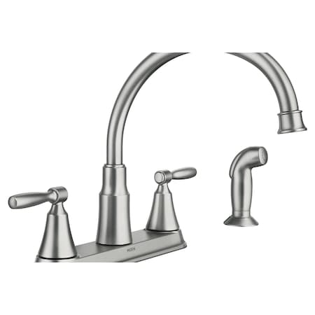 Moen Hutchinson 87048SRS Spot Resist Stainless 2-Handle Deck-Mount High-Arc Handle Kitchen Faucet (Deck Plate Included)