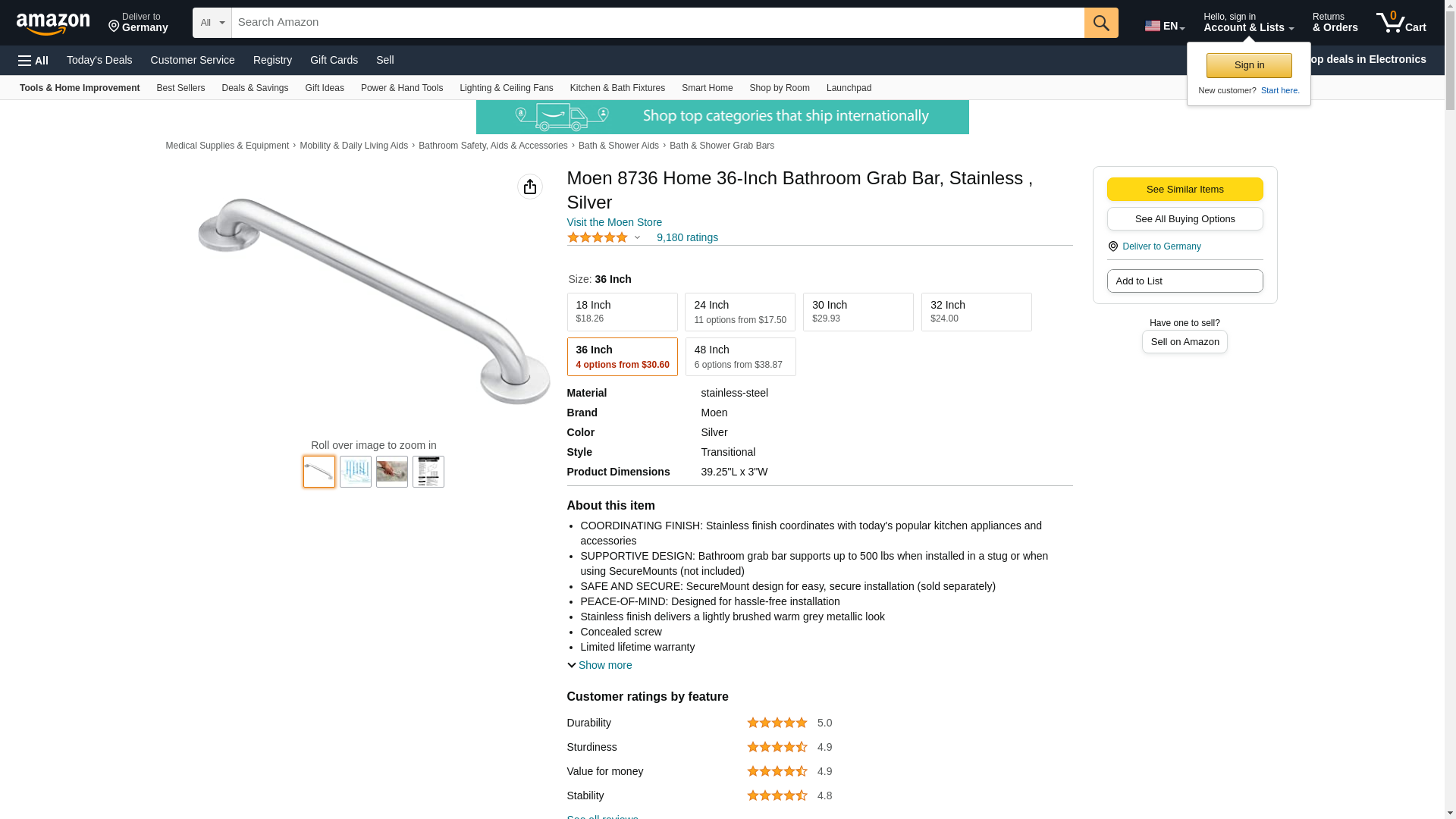 | Feature | 36-inch grab bar supports up to 500 lbs. |