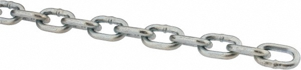Chain, Welding Type Welded, For Lifting No, Chain Link Style Straight, Chain Classification Machine, Trade Size 2 in, Length 100 ft, Working Load Limit 325 lb, Finish Zinc Plated, Material Carbon Steel, Links per Foot 19, Standards NACM