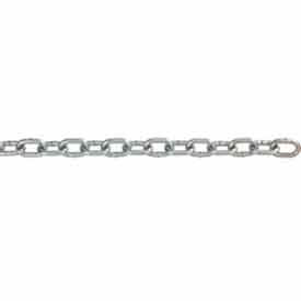 Chain, Welding Type Welded, For Lifting No, Chain Link Style Straight, Chain Classification Machine, Trade Size 3 in, Length 100 ft, Working Load Limit 270 lb, Finish Zinc Plated, Material Carbon Steel, Links per Foot 21, Standards NACM