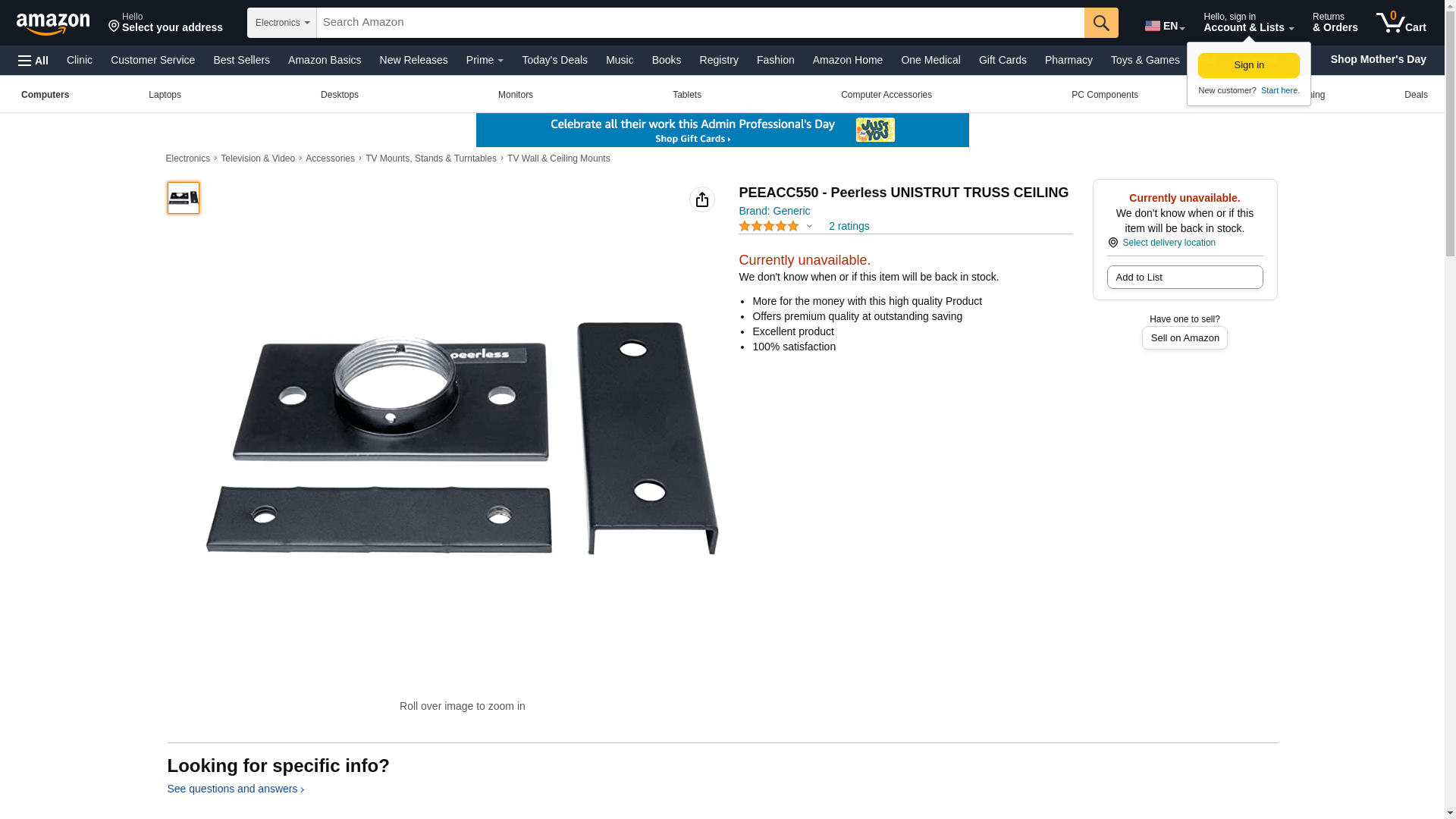 PEEACC550 - Peerless UNISTRUT TRUSS CEILING