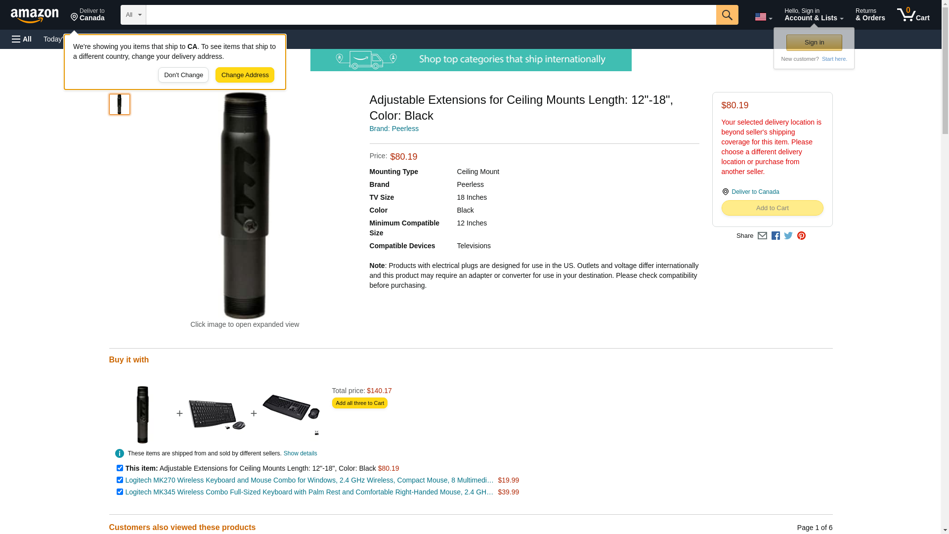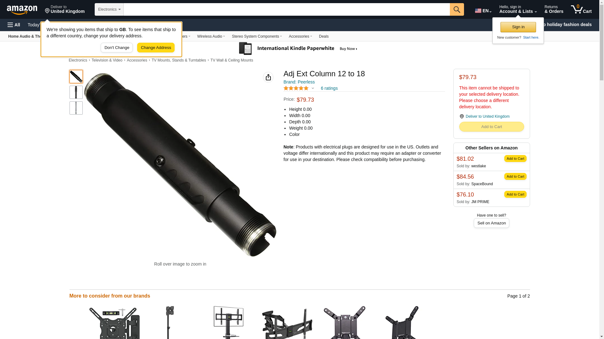 AEC+012018 Length: 12"-18", Color: Black Features: -Peerless TV and Projector Ceiling Mounts & Parts collection. -Select the adjustable range to meet your needs. -Locking, tube-in-tube design. -Notched, both ends, for safety locking. -NOTE: Length options refer to drop distance, actual column length with threads adds roughly 3.5''. Product Type: -Extension column/Extension column accessories. Dimensions: -Adjustable at 1'' increments. Overall Width - Side to Side: -1.32". Overall Depth - Front to Back: -1.32". Length 6"-9" - Overall Product Weight: -3 lbs. Length 12"-18" - Overall Height - Top to Bottom: -144". Length 18"-24" - Overall Height - Top to Bottom: -216". Length 2'-3' - Overall Height - Top to Bottom: -24". Length 10'-12' - Overall Height - Top to Bottom: -120". Length 10'-12' - Overall Product Weight: -45 lbs.