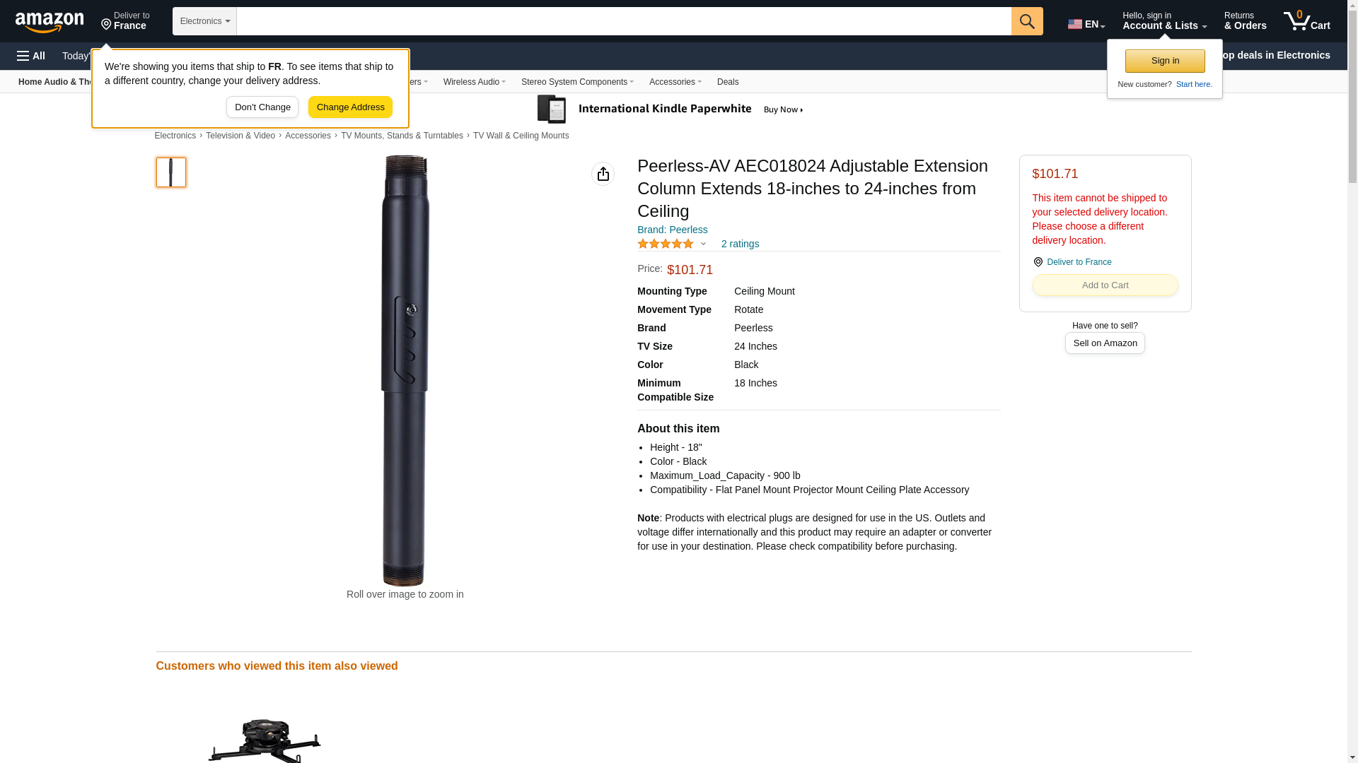 Peerless-av Aec018024 Mounting Extension For Flat Panel Display,
