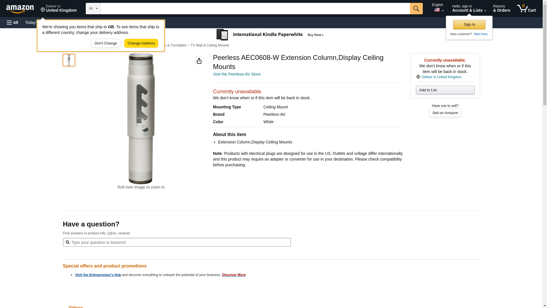 Peerless AEC0608-W Extension Column,Display Ceiling Mounts