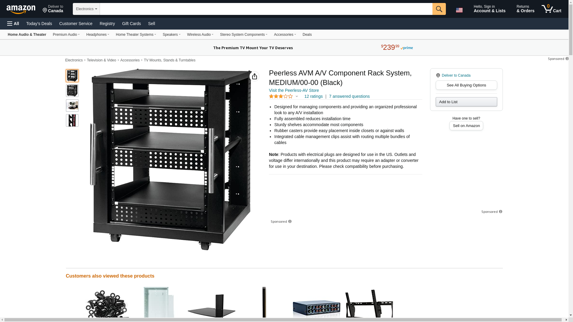 Peerless AVM A/V Component Rack System, MEDIUM/00-00 (Black)