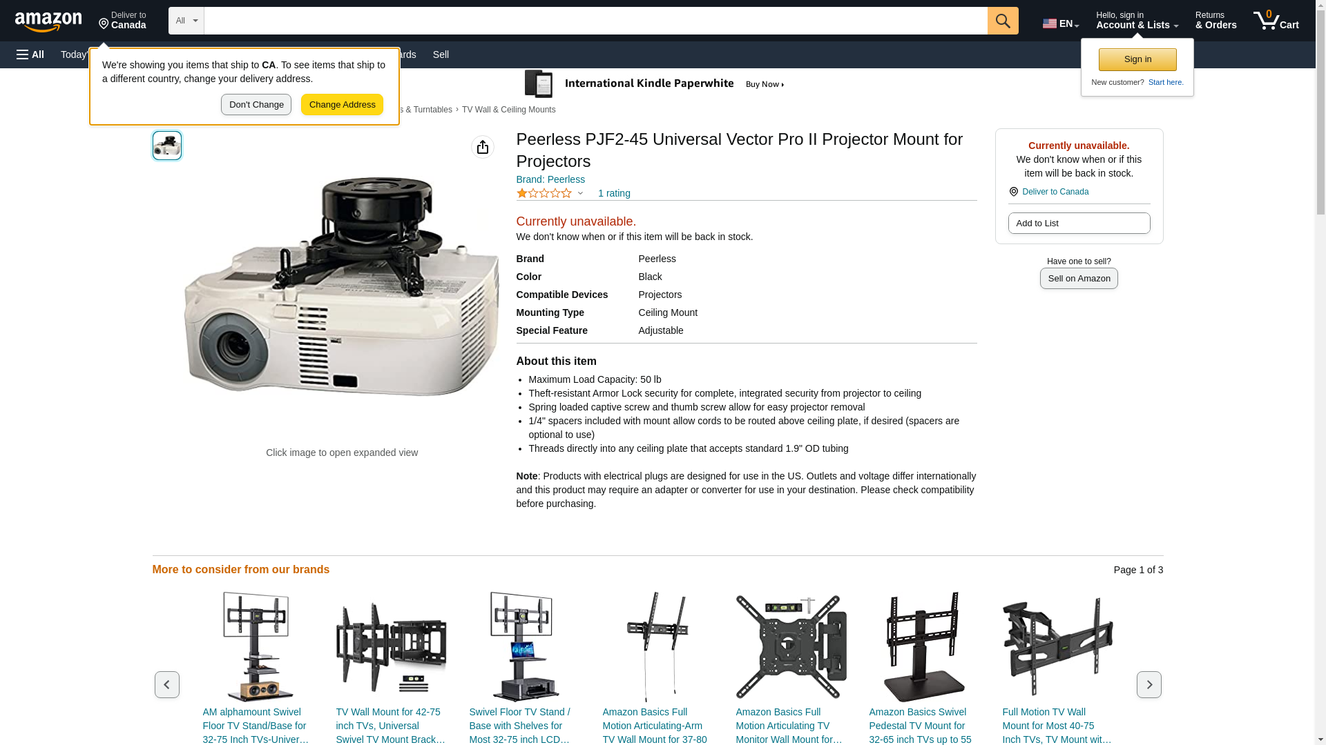 Peerless PJF2-45 Universal Vector Pro II Projector mount for Projectors. Maximum Load Capacity: 50 lb. Theft-resistan...