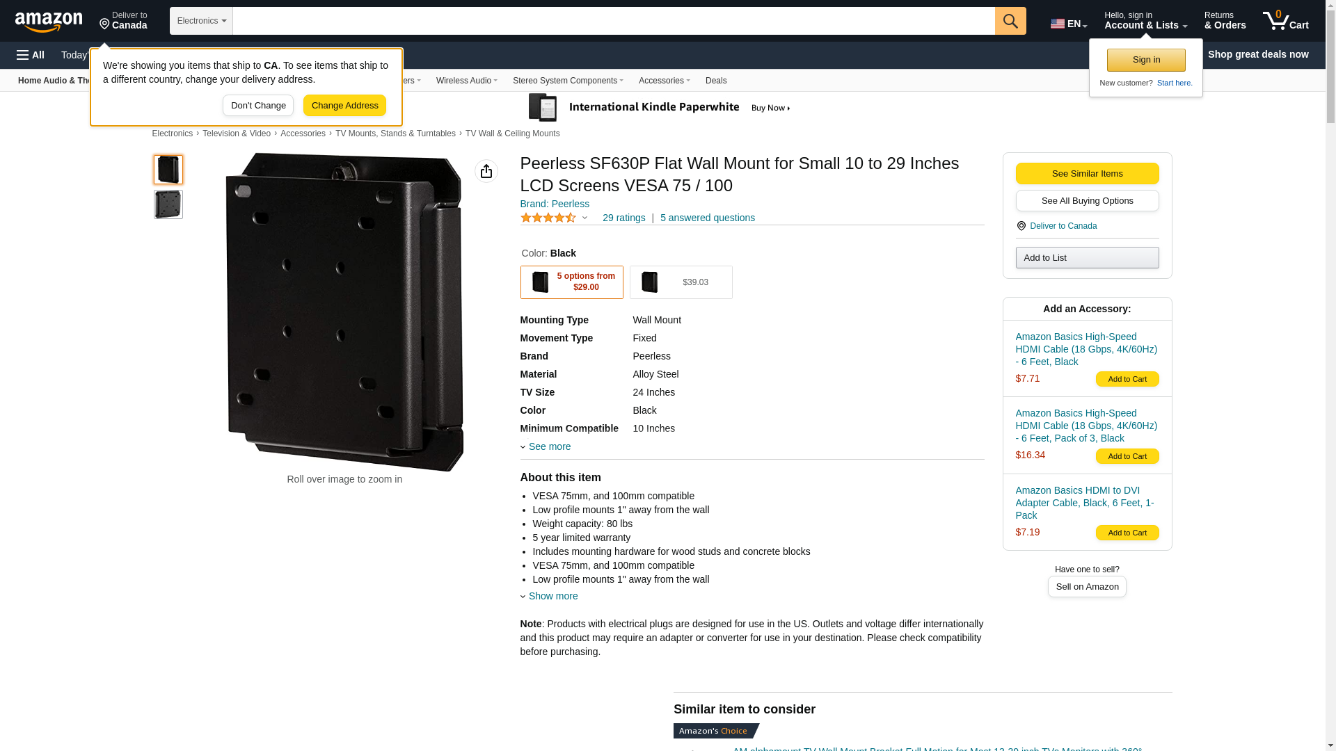 Peerless SF630P Flat Wall Mount for Small 10 to 29 Inches LCD Screens VESA 75 / 100
