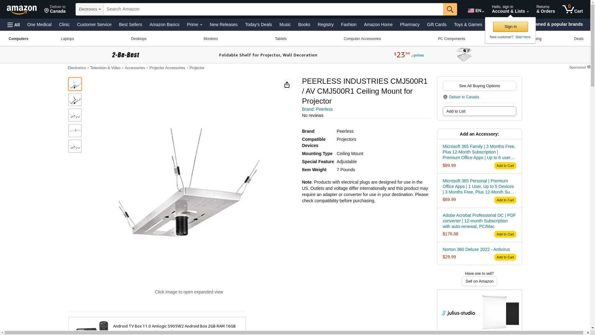- Peerless-Av Cmj500r1 Ceiling Mount For Projector - 60.00 Lb Load ...