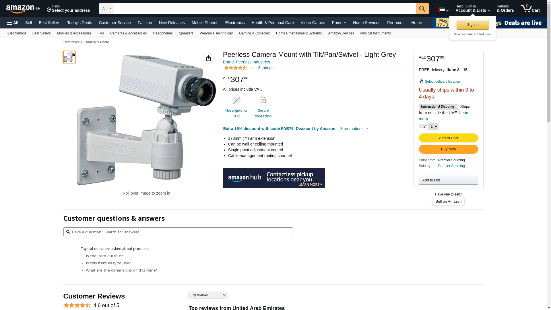 Peerless CMR410 7-Inch Security Camera Mount. Product Type: Mounting Arm. Load Capacity: 10 lb Maximum. Color: Gray. ...