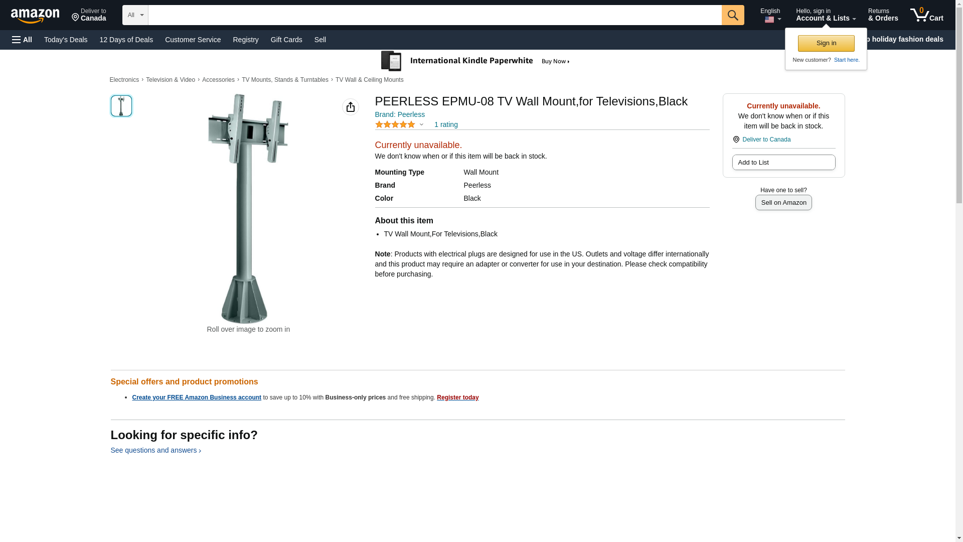 PEERLESS EPMU-08 TV Wall Mount,for Televisions,Black