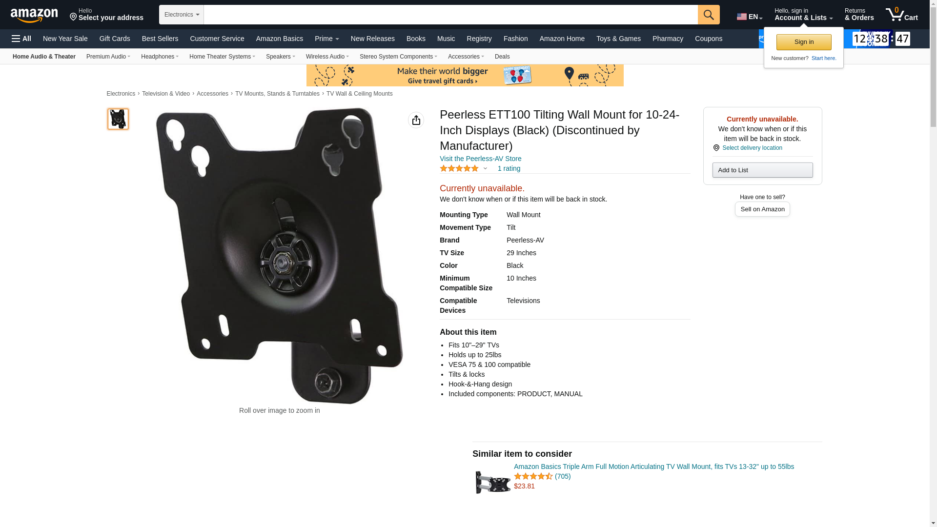 Peerless ETT100 Tilting Wall Mount for 10-24-Inch Displays (Black) (Discontinued by Manufacturer)