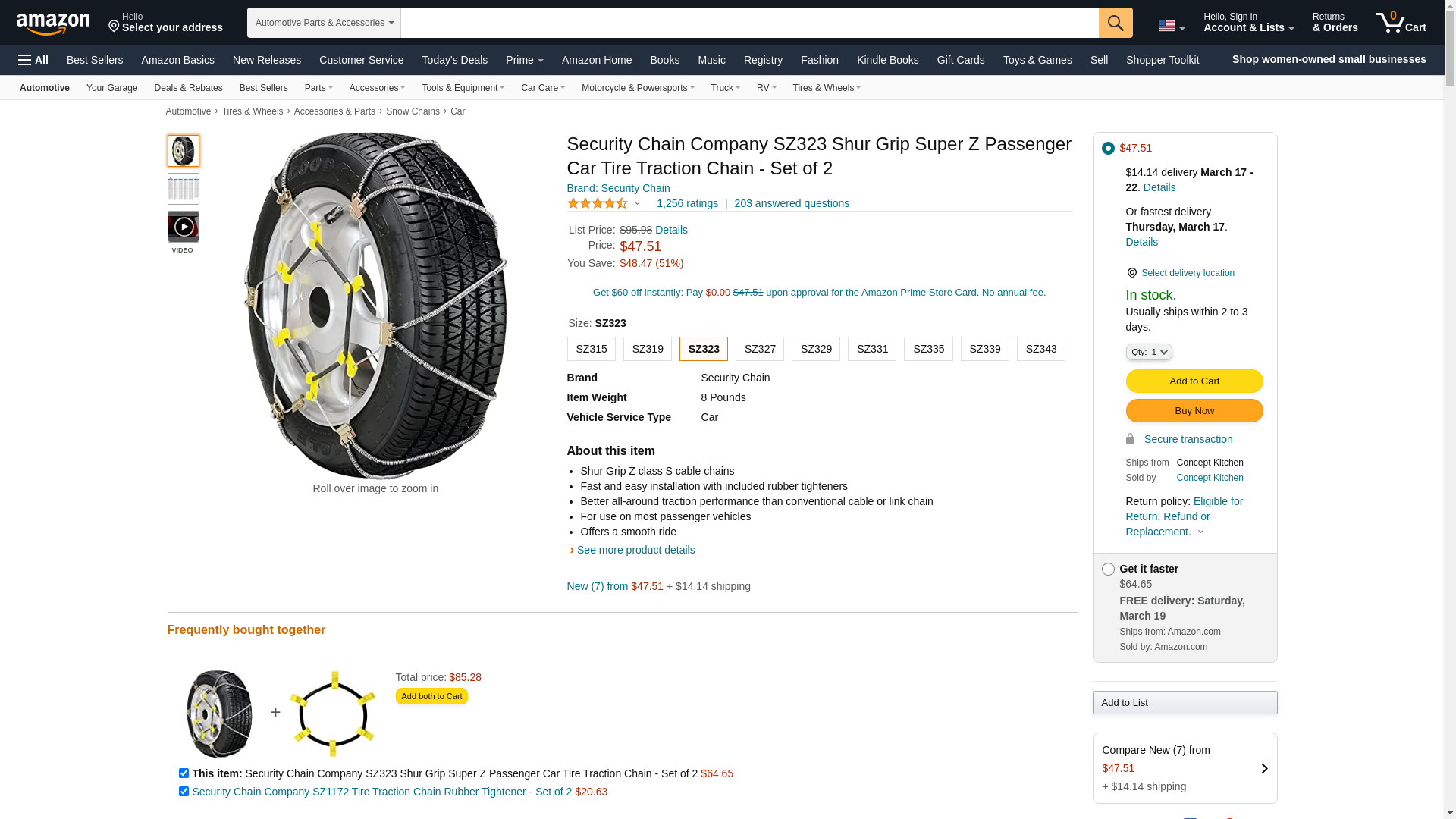 Security Chain Company SZ323 Shur Grip Super Z Passenger Car Tire Traction Chain - Set of 2