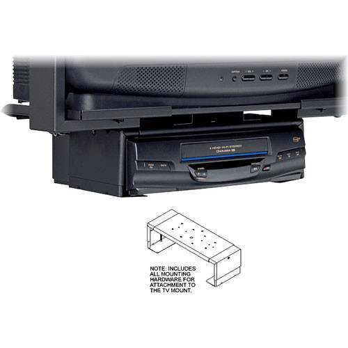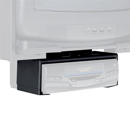 VCR attachment adjustable in both height and width these mounts acmodate most front-loading VCRs VCPs and DVD players. The security version uses tamper resistant adjustment screws which lock the equipment in place. Kit includes all hardware for easy attachment to Peerless TV mounts. Units are stackable. Primary InformationProduct Type : Mounting ponent Product Material : steel Color : black Features : Adjustable height adjustable width scratch-resistant; Max Load Weight: 50 lbs Dimensions&MiscellaneousWidth : 13.25 - 17.25 Inch Height : 1.5 - 2.8 Inch UNSPSC CodeUNSPSC Code : 43212000
