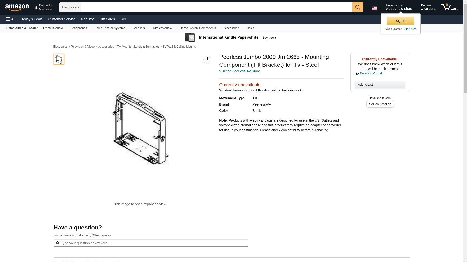 Peerless Jumbo 2000 Jm 2665 - Mounting Component (Tilt Bracket) for Tv - Steel