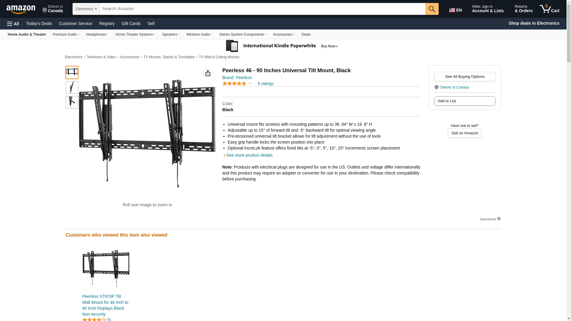 Peerless 46 - 90 Inches Universal Tilt Mount, Black