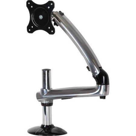 Monitor Arm, Color Black, Finish Gloss, Overall Load Capacity 17.8 lb, Material Aluminum, Overall Width 4 in, Mounting Location Surface, Overall Height 18 1/2 in, Overall Depth 4 in, Compatible Diagonal Screen Size Maximum 38 in, Maximum Downward Tilt Angle 90 Degrees , Maximum Swivel Angle 180 Degrees , Maximum Upward Tilt Angle 45 Degrees , VESA Pattern 100x100, 75x75, Features Articulating Arm, Bushings at All Pivot Points, Manufacturers Warranty Length 5 yr, Product Type Monitor Arm
