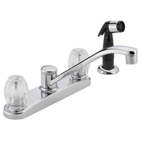 This 2-Handle Side Sprayer Kitchen Faucet in Chrome is an easy and affordable way to update the look of your kitchen. Its simple design complements a variety of design styles. You can buy with confidence, knowing that Peerless backs this faucet with a lifetime limited warranty.
