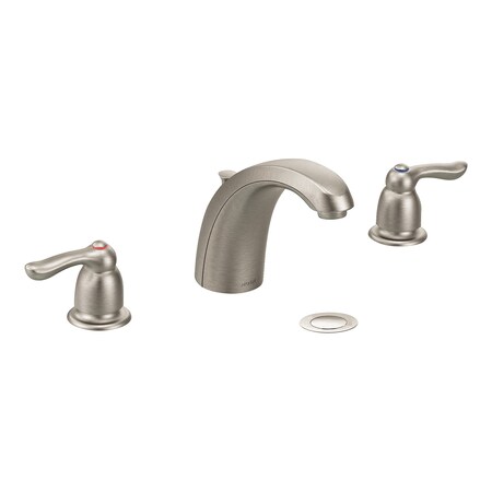 Product Features: Faucet body constructed of brass Covered under Moen's 5 year limited commercial faucet warranty Premier finishing process - finishes will resist corrosion and tarnishing through everyday use Faucet centers are adjustable from 8" to 16" for convenience Double handle operation - handles rest on 1/4 turn valves Includes pop-up drain assembly ADA compliant - complies with the standards set forth by the Americans with Disabilities Act for bathroom faucets Low lead compliant - meeting federal and state regulations for lead content WaterSense Certified product - uses at least 30% less water than standard 2.2 GPM faucets, while still meeting strict performance guide lines Complete with ceramic disc valve Designed for use with standard U.S. plumbing connections All hardware needed for mounting is included with faucet Product Technologies / Benefits: WaterSense/Eco-Performance: Moen is making a global difference by partnering with environmental organizations and creating eco-friendly products. WaterSense products feature a flow optimizing aerator; these products use less water without sacrificing performance. Product Specifications: Overall Height: 5-1/4" (measured from counter top to highest part of faucet) Spout Height: 4-1/4" (measured from counter top to spout outlet) Spout Reach: 5-1/2" (measured from center of faucet base to center of spout outlet) Number of Faucet Holes Required for Installation: 3 Faucet Centers (Distance Between Handle Installation Holes): 8" - 16" Flow Rate: 1.2 (gallons-per-minute) Maximum Deck Thickness: 1-1/4" 2 handles included with faucet Valve Type: Ceramic disc Variations: 8922: This model 8917: Centerset version of this model 8924: This model with grid drain