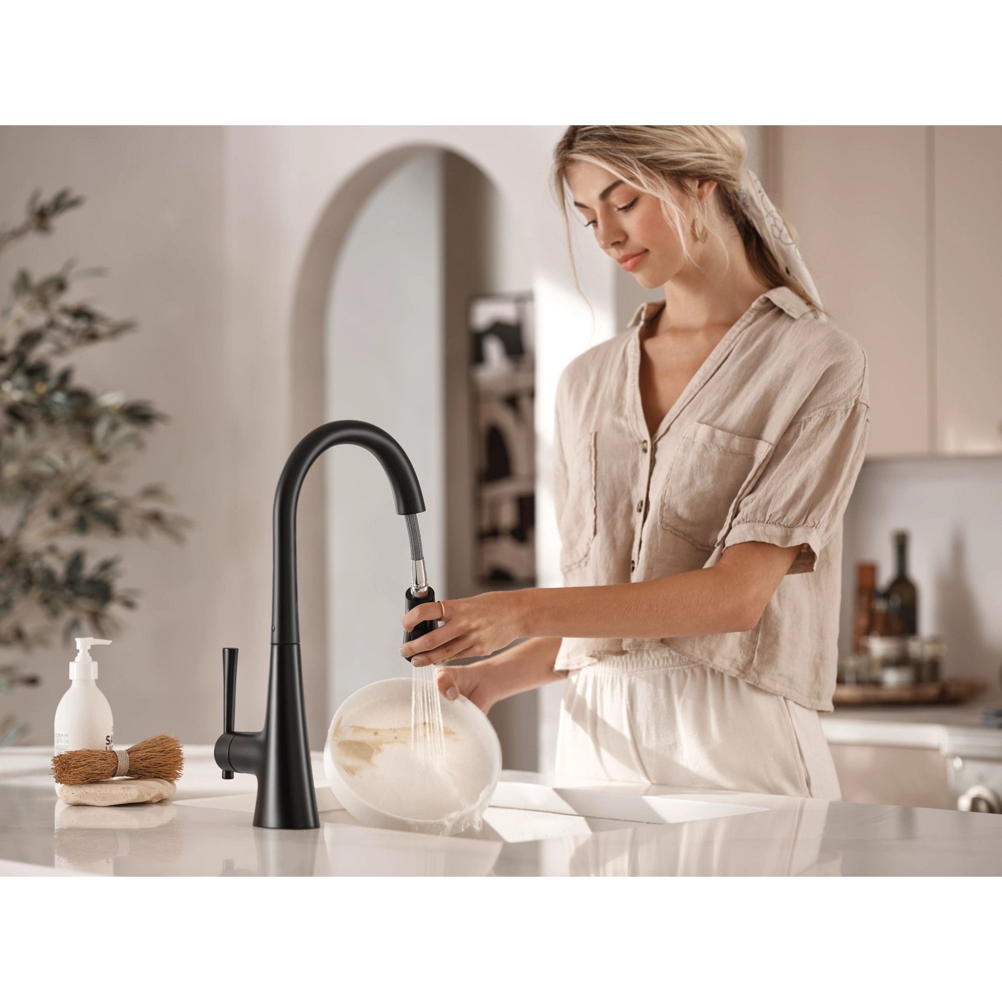 Moen - 9126EVBL - Kurv Smart Faucet Touchless Pull Down Sprayer Kitchen Faucet with Voice Control and Power Boost, Matte Black