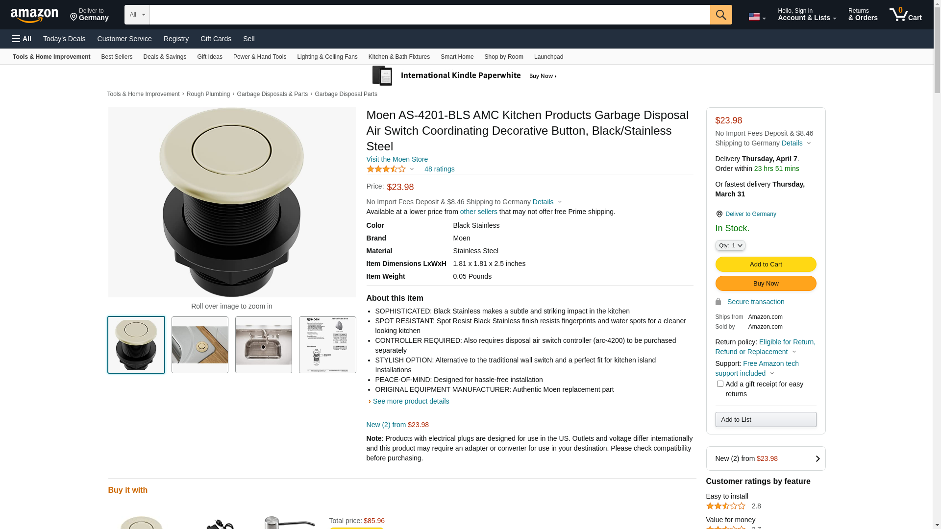 Moen AS-4201-BLS AMC Kitchen Products Garbage Disposal Air Switch Coordinating Decorative Button, Black/Stainless Steel