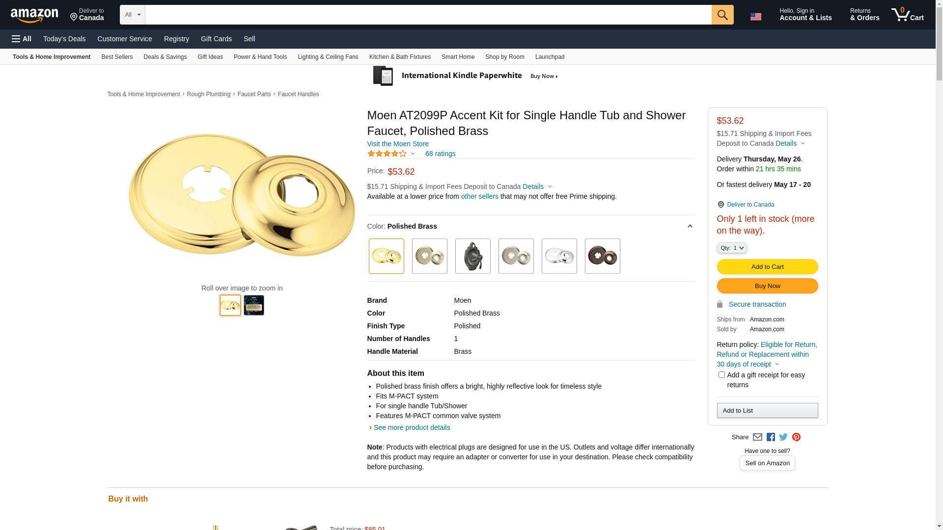 Moen AT2099P Accent Kit for Single Handle Tub and Shower Faucet, Polished Brass