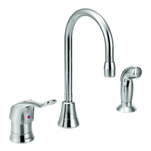 Get a discount on the Moen 8138 M-Dura Chrome Single-Handle Kitchen Faucet with Side Sprayer via PlumbersStock - Moen is a name you can trust.
