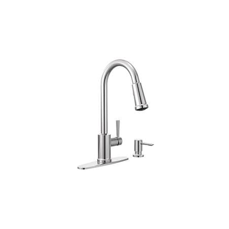 Product Features: Faucet body constructed of Metal Covered under Moen's limited lifetime faucet warranty LifeShine finishes resist tarnishing and corrosion for the life of the faucet finish covered under lifetime warranty Single handle operation Soap/Lotion dispenser included with faucet Pullout spray faucet head with 59” hose enhances faucets versatility High-arch gooseneck spout design provides optimal room under the faucet for any size task Includes optional escutcheon (cover plate) for sinks with 3 faucet holes ADA compliant complies with the standards set forth by the Americans with Disabilities Act for kitchen faucets Low lead compliant meeting federal and state regulations for lead content Product Technologies / Benefits: LifeShine Non-Tarnish Finish: Moen LifeShine finishes are guaranteed not to tarnish, corrode or flake off for the duration of their life. Providing the durability and wearability of chrome in a variety of beautiful, decorator-inspired finishes. The LifeShine finish is in the surface rather than on it, resulting in color stability for a lifetime. The PVD technique used also helps to eliminate hazardous by-products during manufacturing. Duralast Cartridge: An exciting new proprietary cartridge design that offers a smooth feel and reliable operation of a new faucet from the first use to the last use. This new cartridge combines innovative engineering and the highest quality materials. It surpasses conventional durability standards to withstand the toughest conditions, including hard water. Pause Buttons: Moen's patented pause button allows the home owner to interrupt the water flow while moving the spout outside the sink. The functionality makes these faucets ideal for watering plants, filling large pots and cleaning up