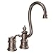 The Moen Waterhill Single-Handle Preparatory/Bar Faucet in Oil-Rubbed Bronze has a high-arc spout with a reach of 6-1/4 in. that can make rinsing dishes and filling containers more convenient. The single lever handle helps make water-on-and-off functions easy. The style of this faucet is charming; the oil-rubbed bronze finish gives a rich, dark brown, old world look with striking light and dark accents.