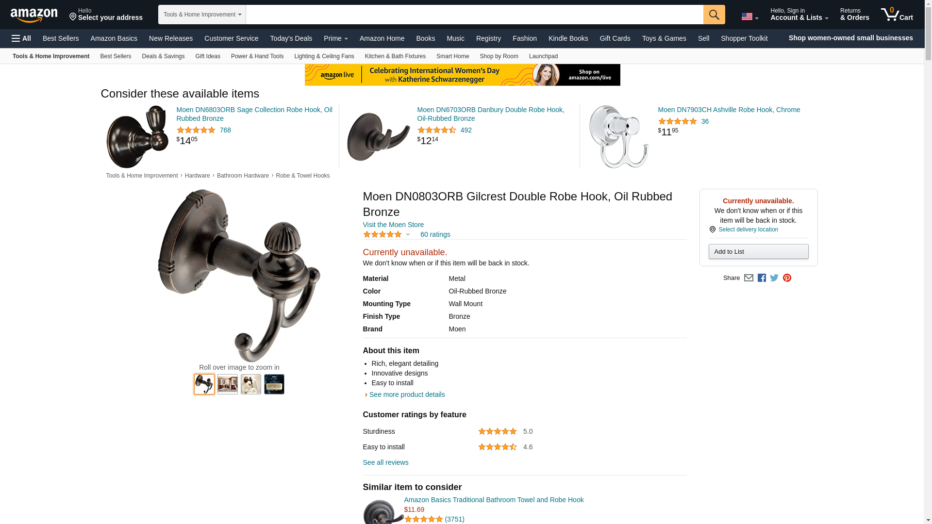 Moen DN0803ORB Gilcrest Double Robe Hook, Oil Rubbed Bronze