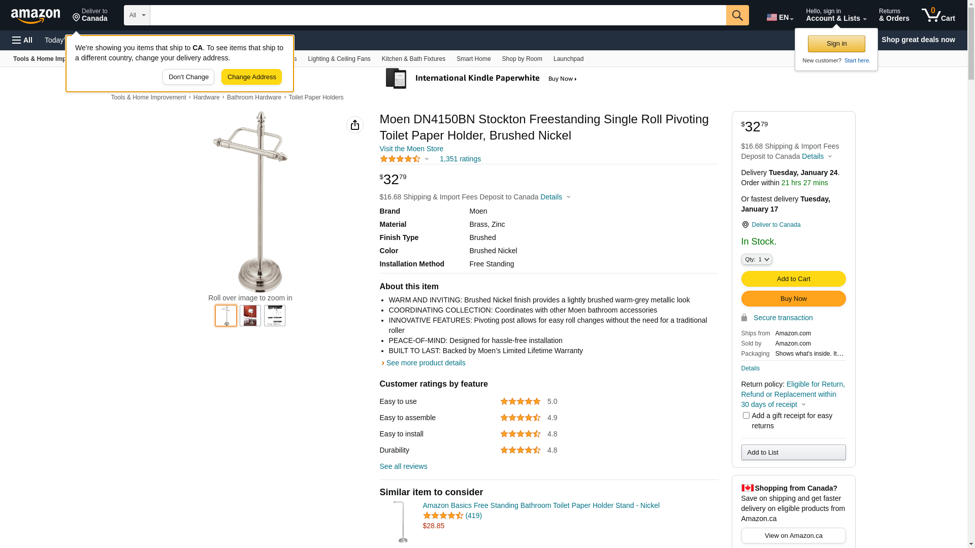 | Feature | Pivoting design for easy toliet paper roll changes |
