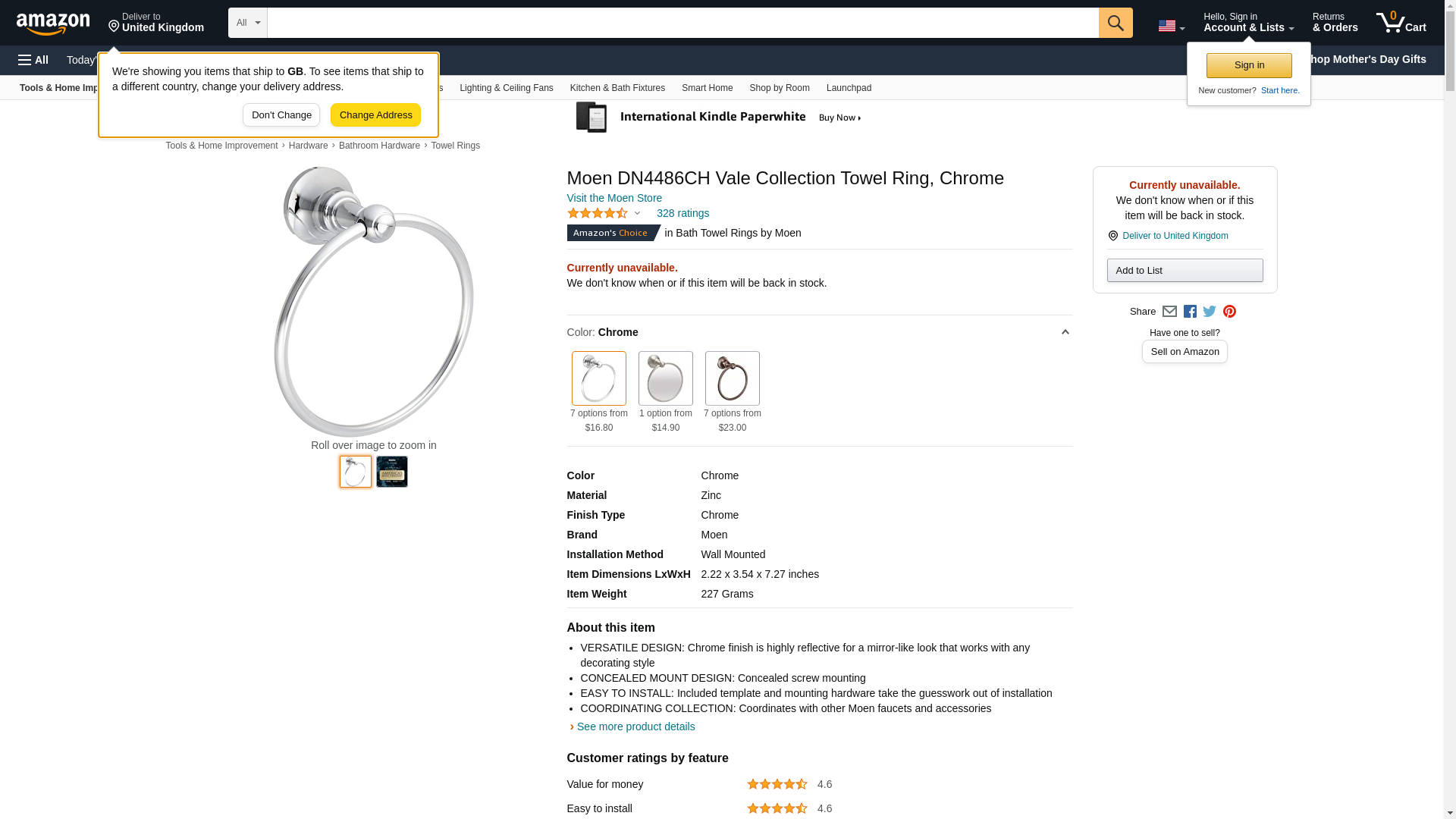 Moen DN4486CH Vale Collection-Towel Ring, Chrome